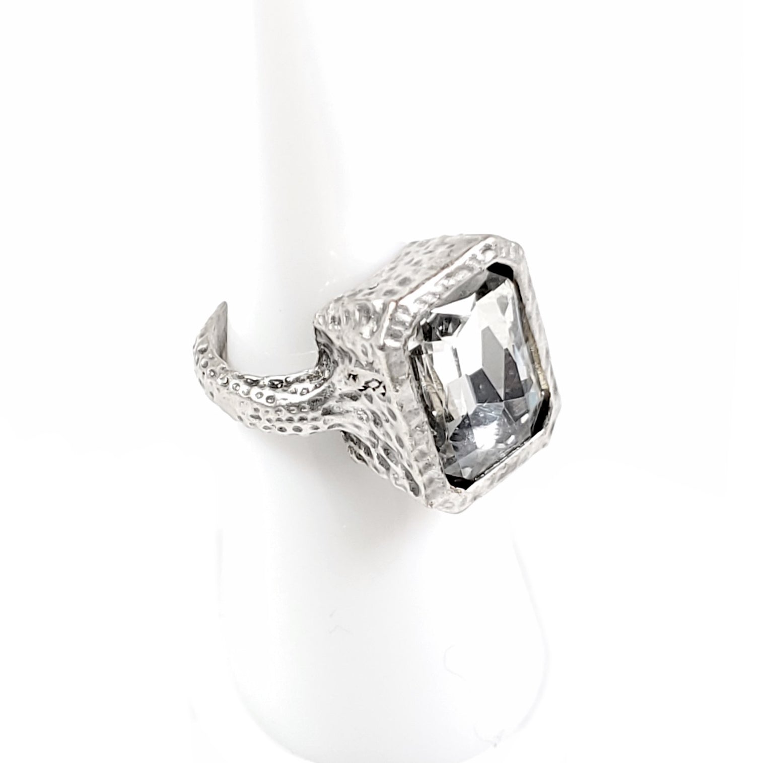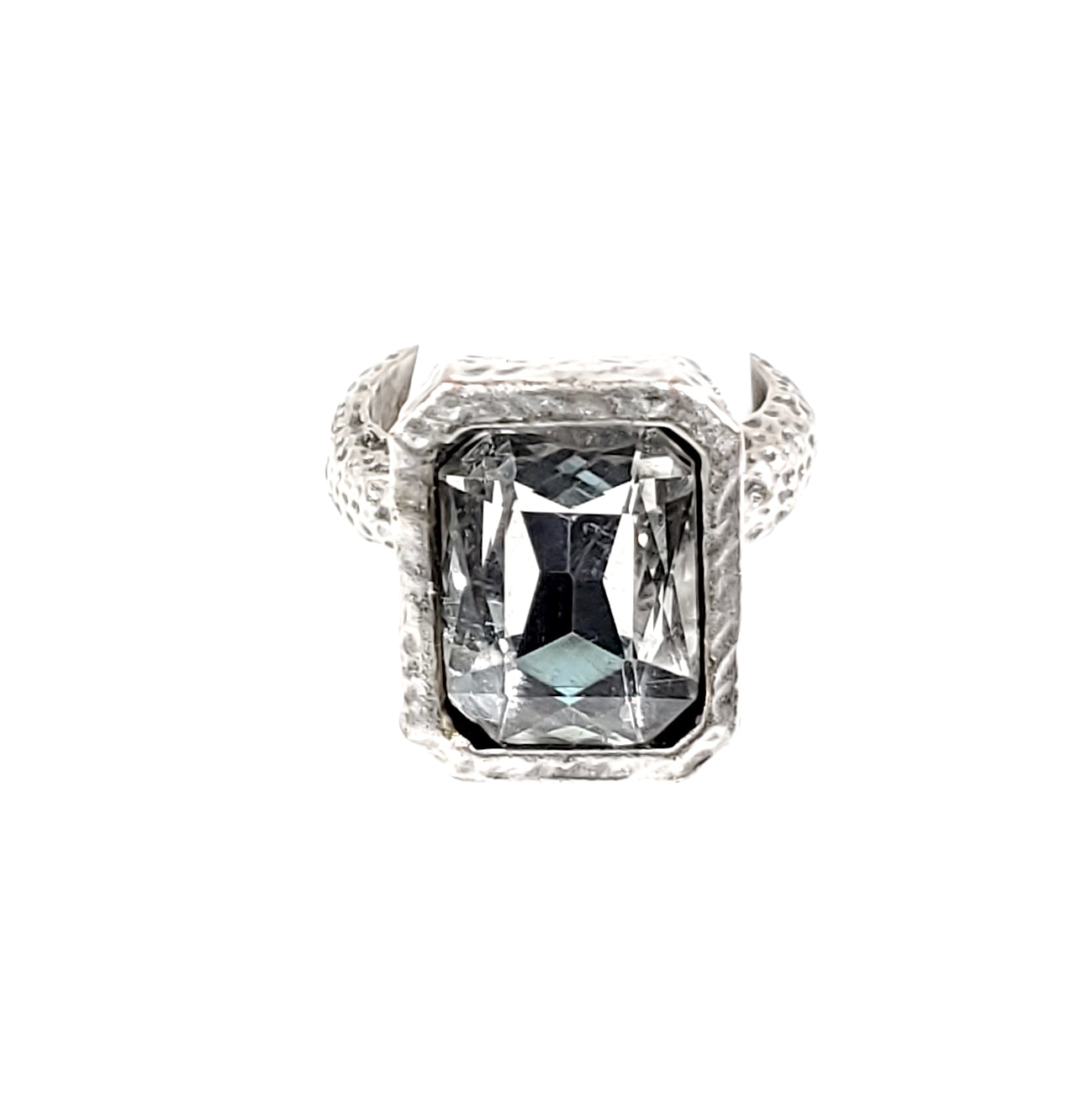 Hand Made Brass size adjustable Ring plated in 925 Silver with Clear Crystal .
