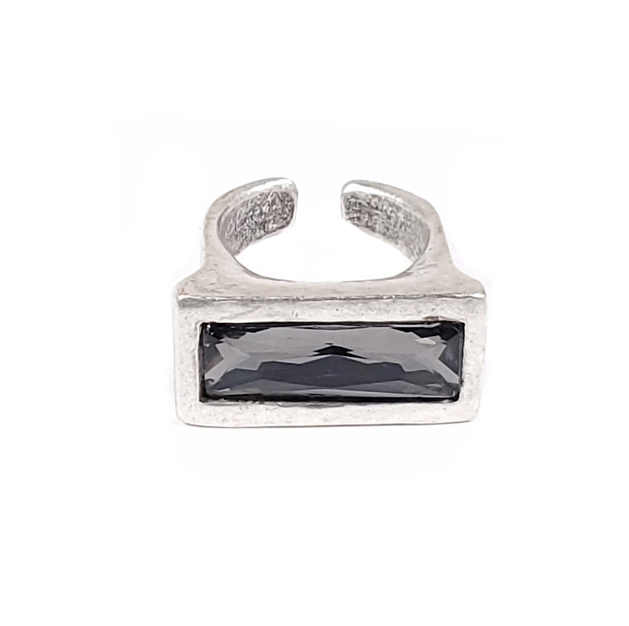 Hand Made Brass size adjustable Ring plated in 925 Silver with Smokey Gray Crystal .