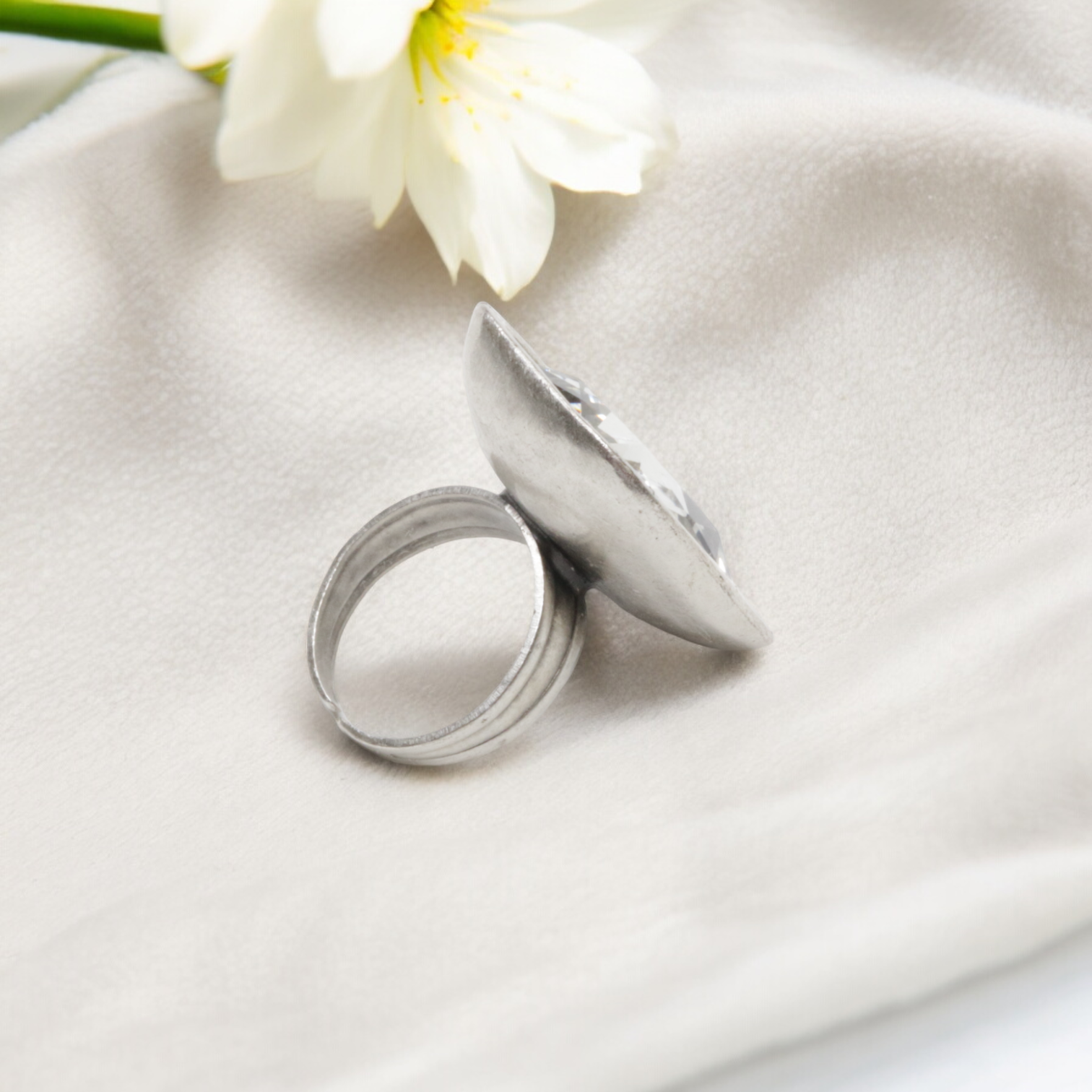 Hand Made Brass Ring with Clear Crystal plated in 925 Sterling Silver.