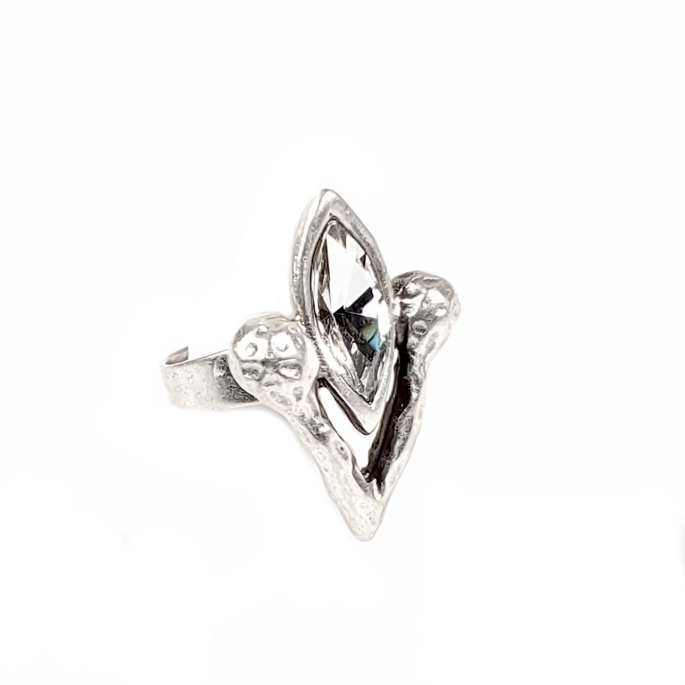 Hand Made Pewter size adjustable Ring plated in 925 Silver with Clear Crystal .