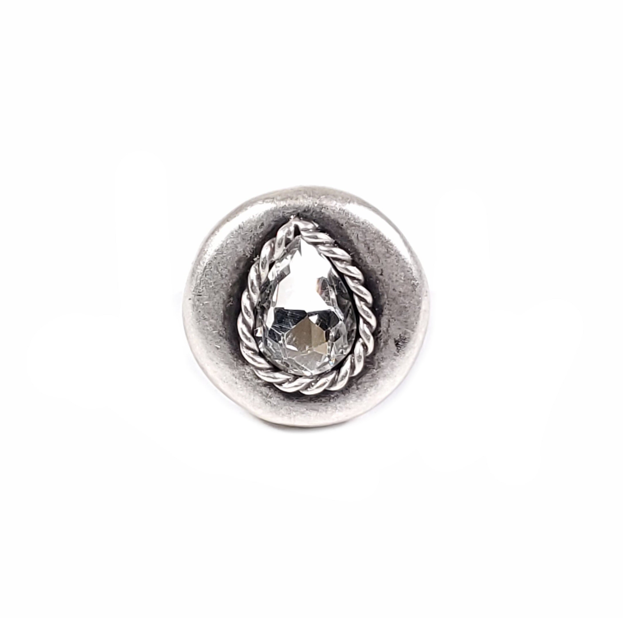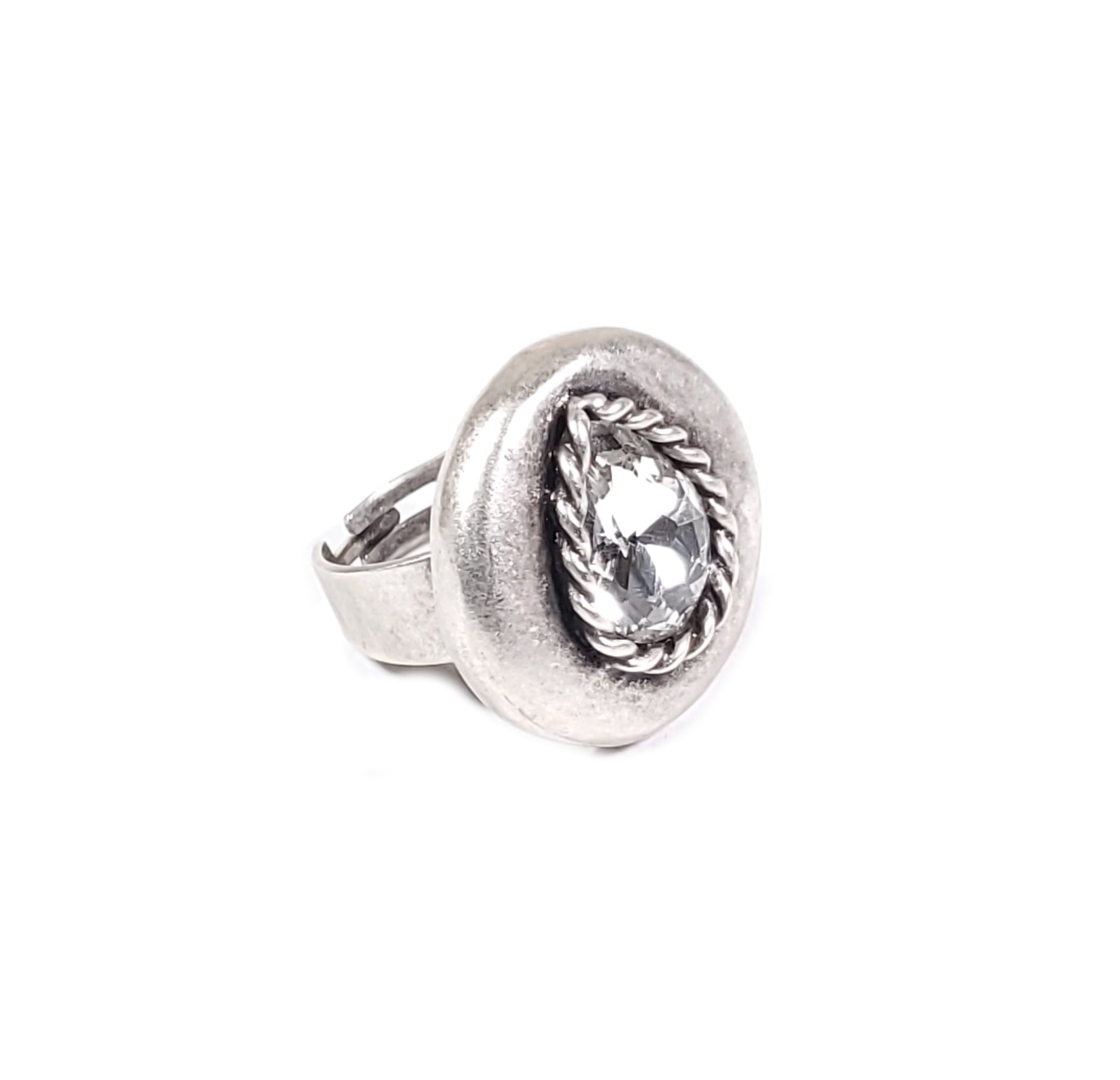 Hand Made Pewter size adjustable Ring plated in 925 Silver with Clear Crystal .