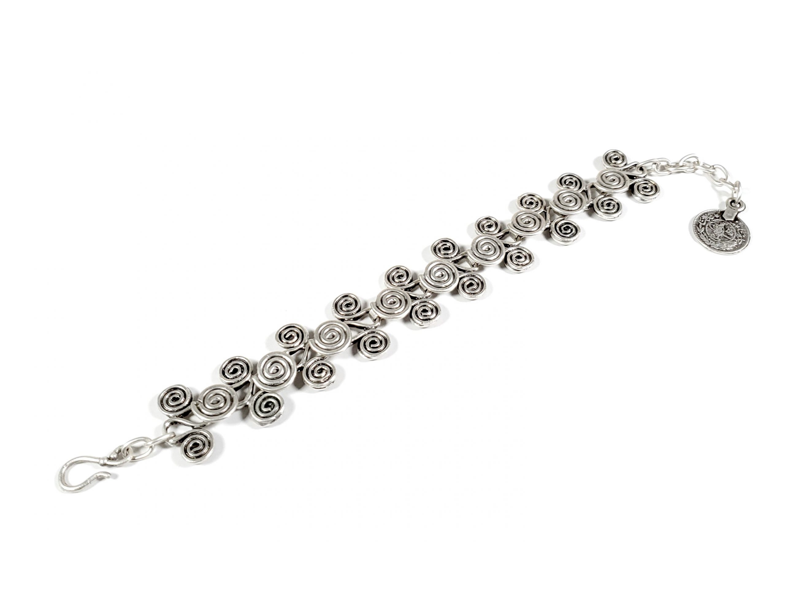 Hand Made Pewter Boho Bracelet plated in 925 Sterling Silver .