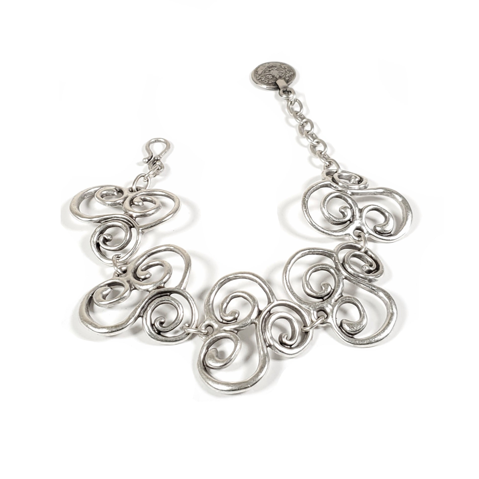 Hand Made Pewter Boho Bracelet plated in 925 Sterling Silver .