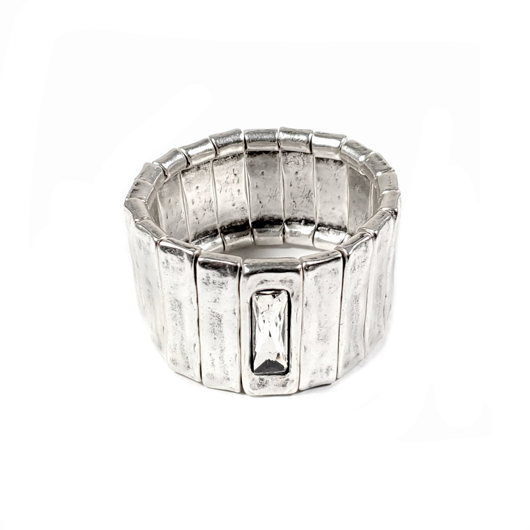 Hand Made Pewter Boho stretch Bracelet plated in 925 Sterling Silver With Clear Crystals .