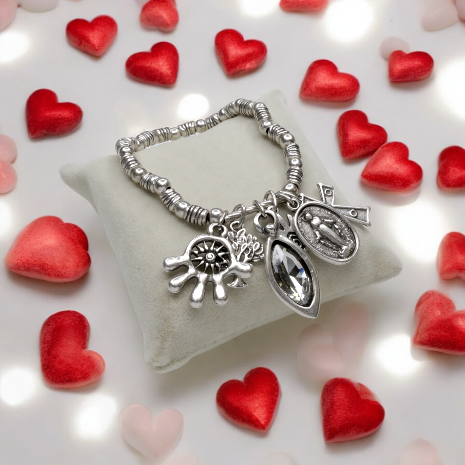 Hand Made Pewter stretch Bracelet plated in 925 Sterling Silver with Clear Crystal .
