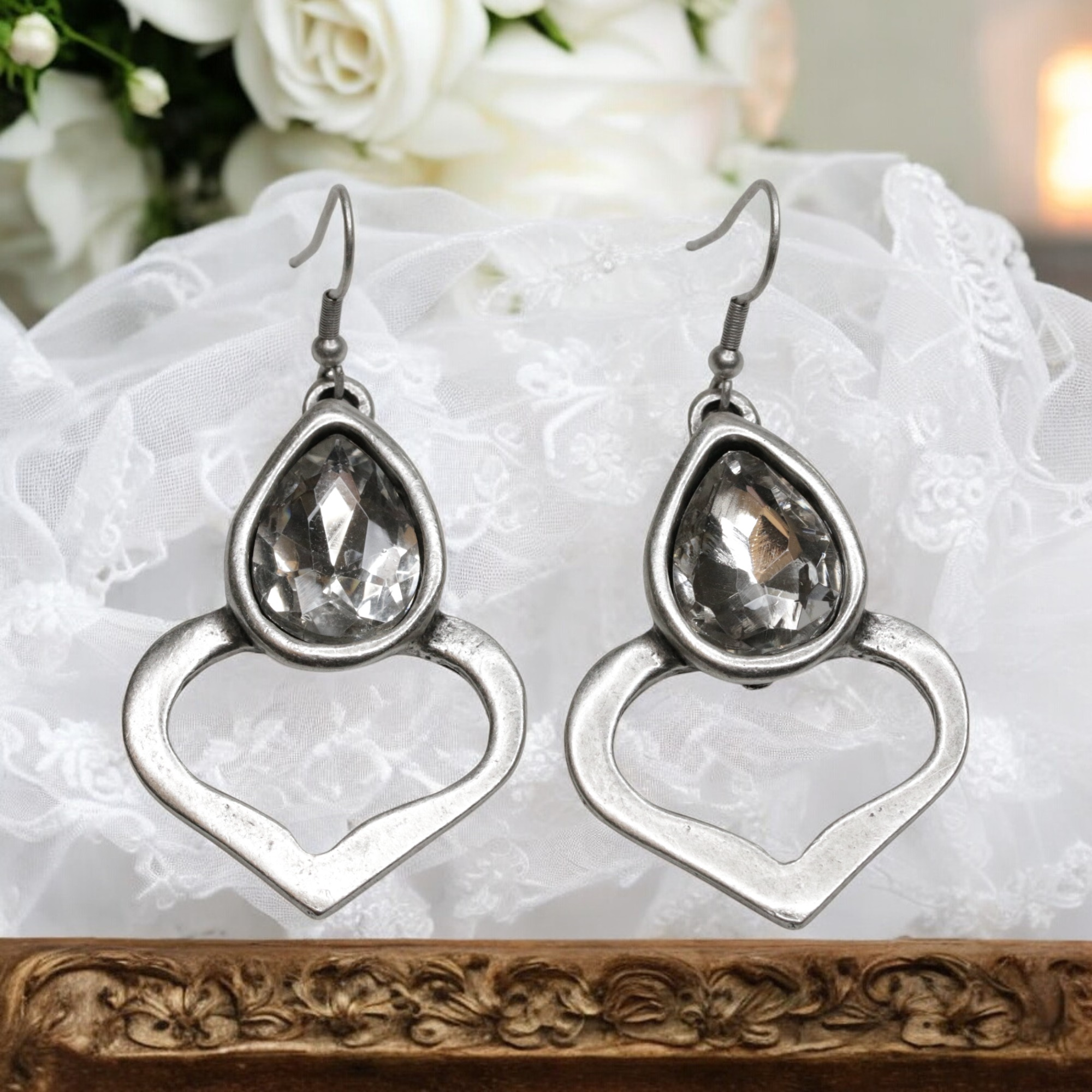Hand Made Pewter Earrings with Clear Crystals plated in 925 Sterling Silver.