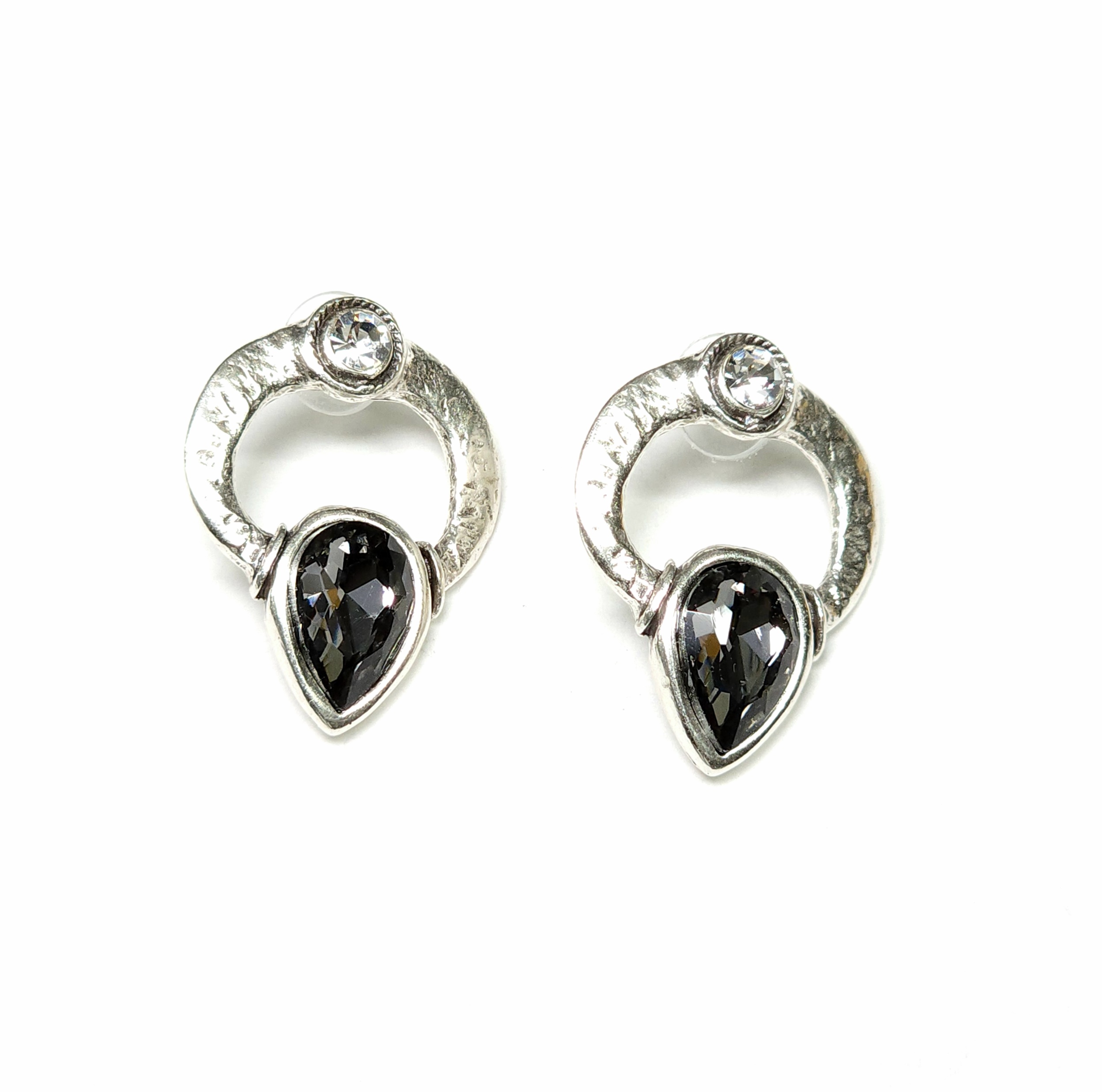 Hand Made Pewter Earrings plated in 925 Silver with smokey Gray crystals.