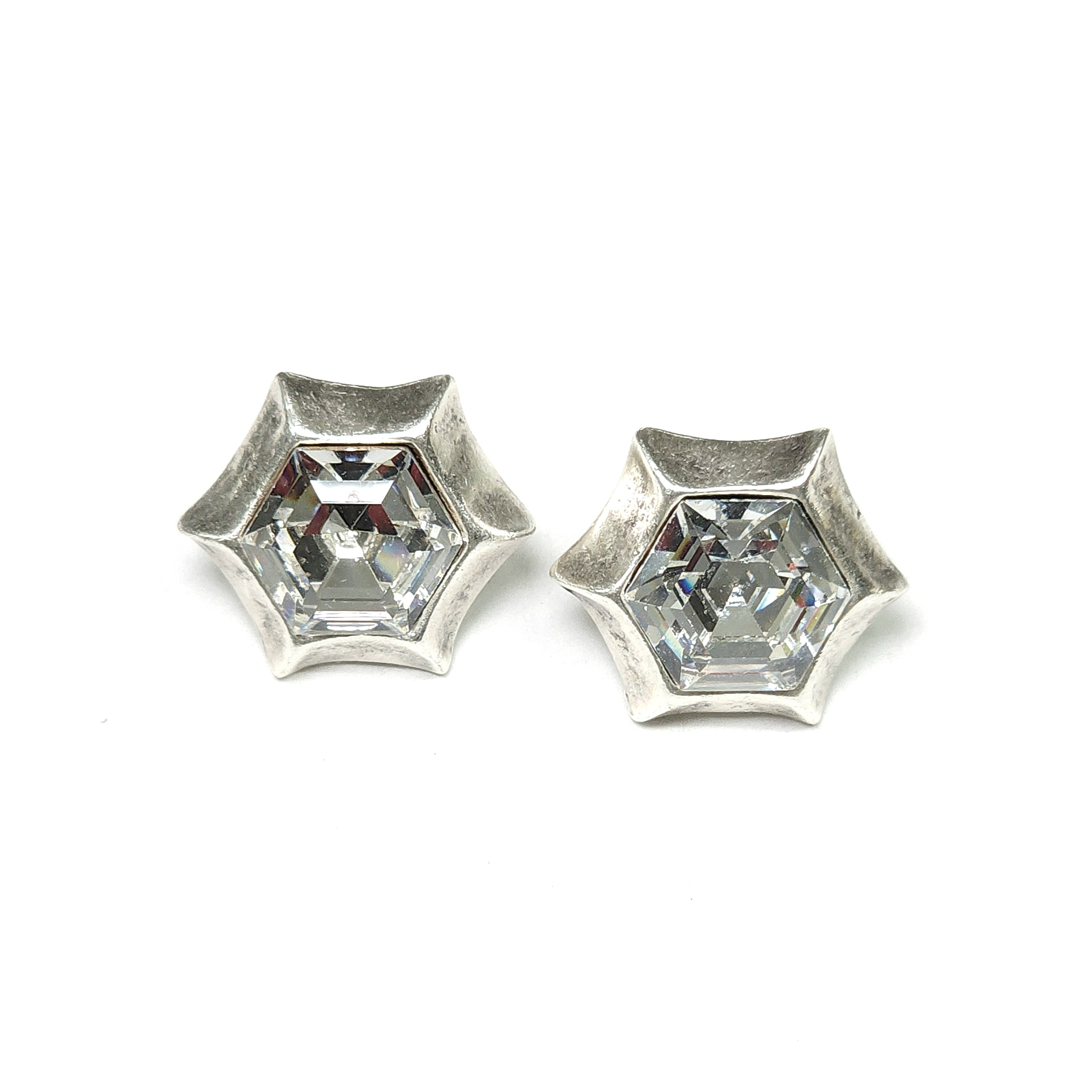 Hand Made Pewter Earrings plated in 925 Silver with clear crystals.