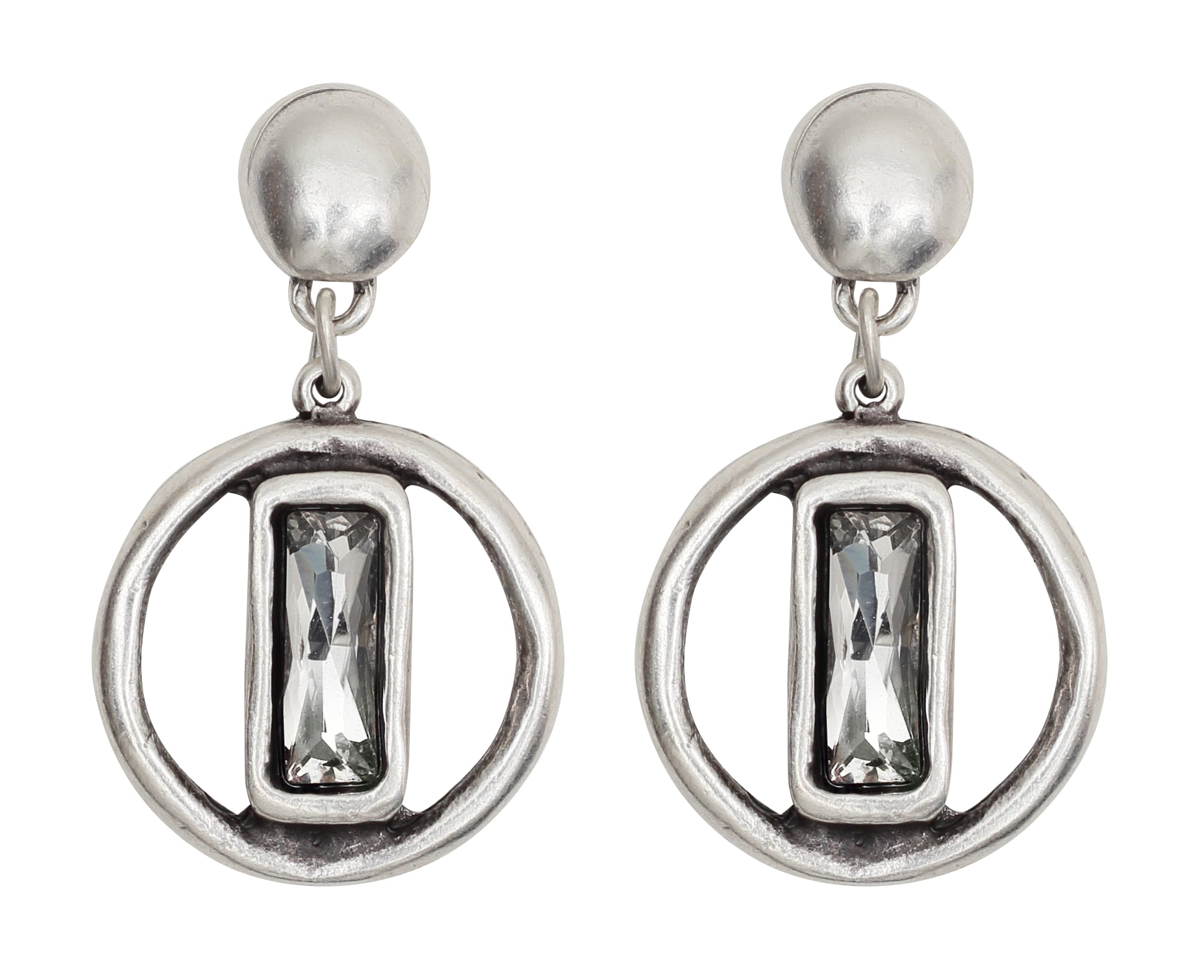 Hand Made Pewter Boho Earrings with Smokey Gray Crystals plated in Silver, Hypoallergenic & Nickel free.