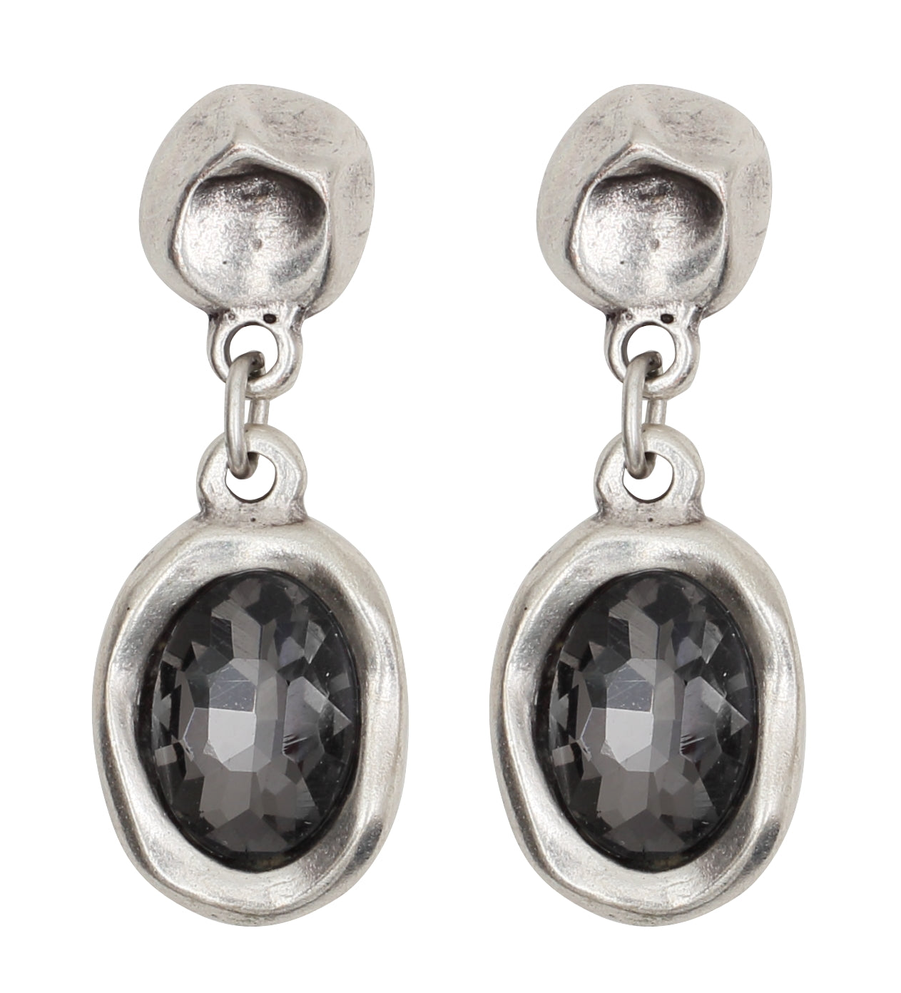 Hand Made Pewter Boho Earrings with Smokey Gray crystals plated in Silver, Hypoallergenic & Nickel free.