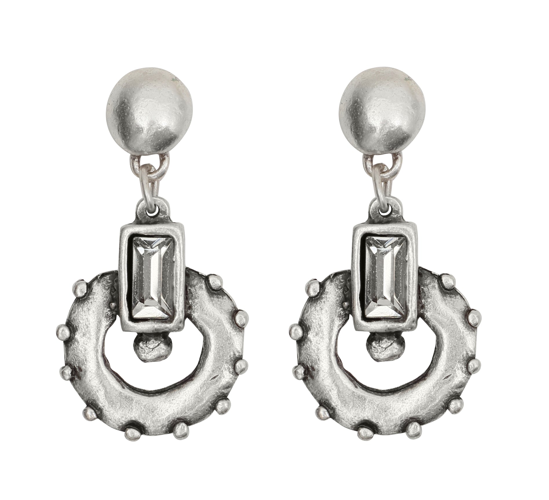 Hand Made Pewter Earrings with clear crystals plated in Silver, Hypoallergenic & Nickel free.