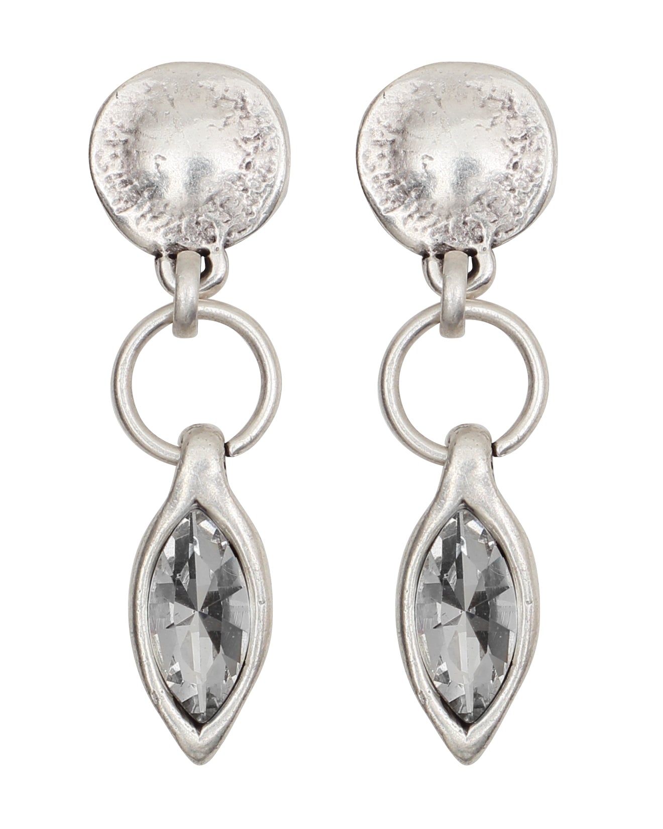Hand Made Pewter Earrings with Clear Crystals plated in Silver, Hypoallergenic & Nickel free.