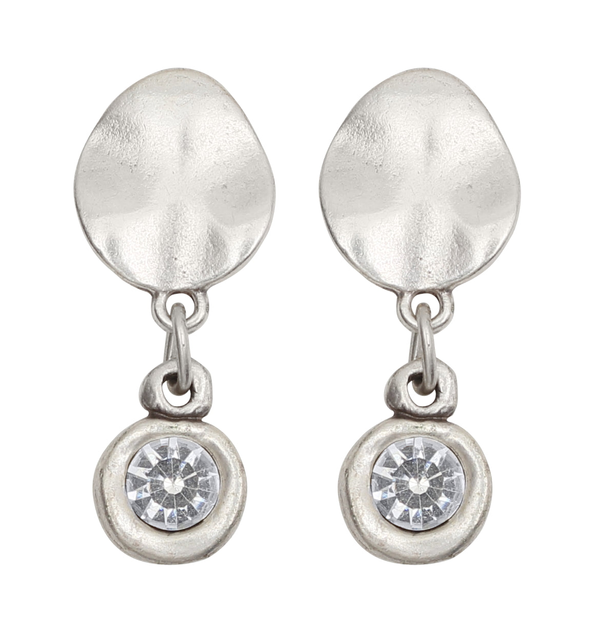 Hand Made Pewter Boho Earrings with Clear Crystals plated in Silver, Hypoallergenic & Nickel free.