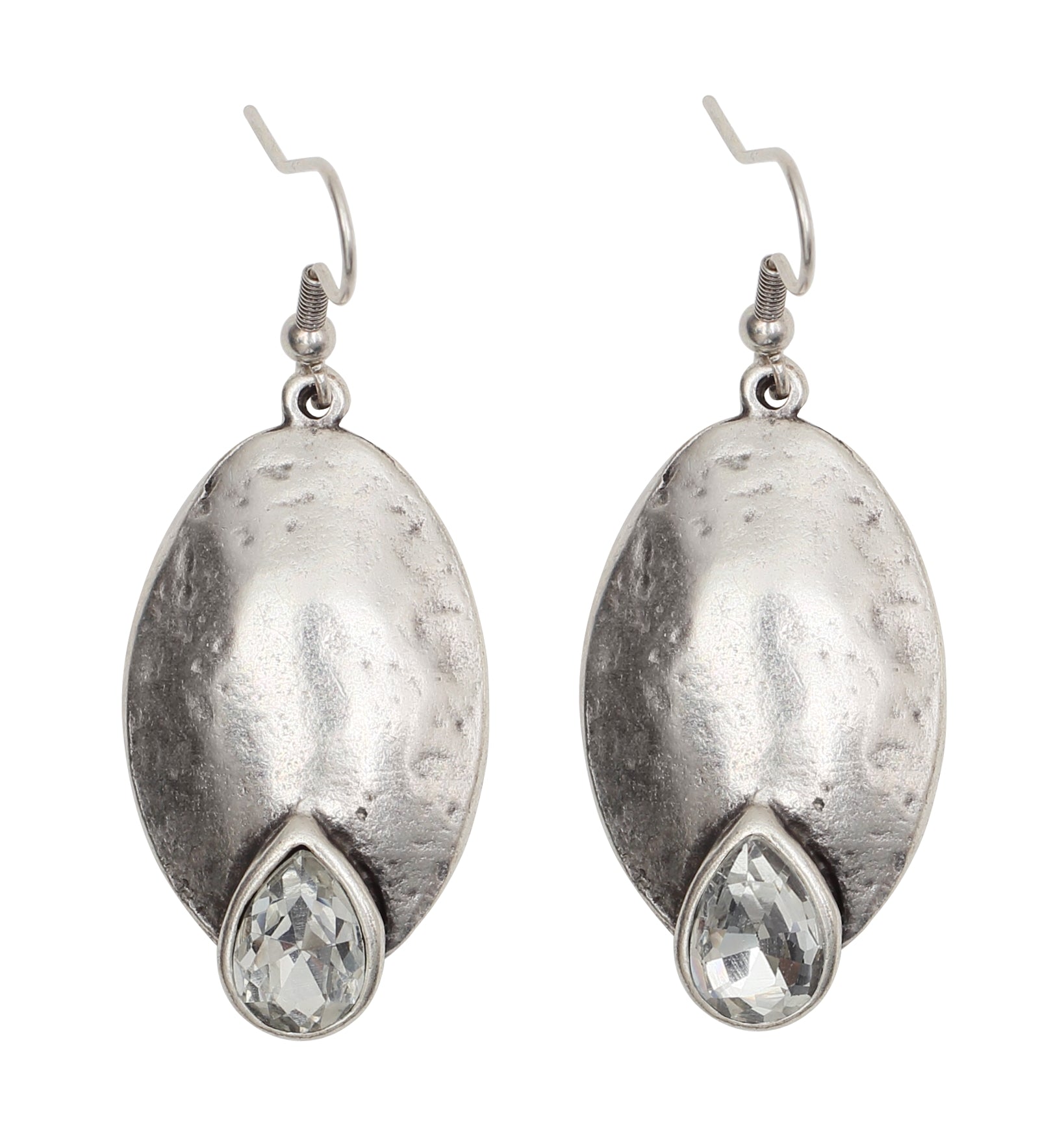 Hand Made Pewter Earrings with Clear Crystals plated in Silver.