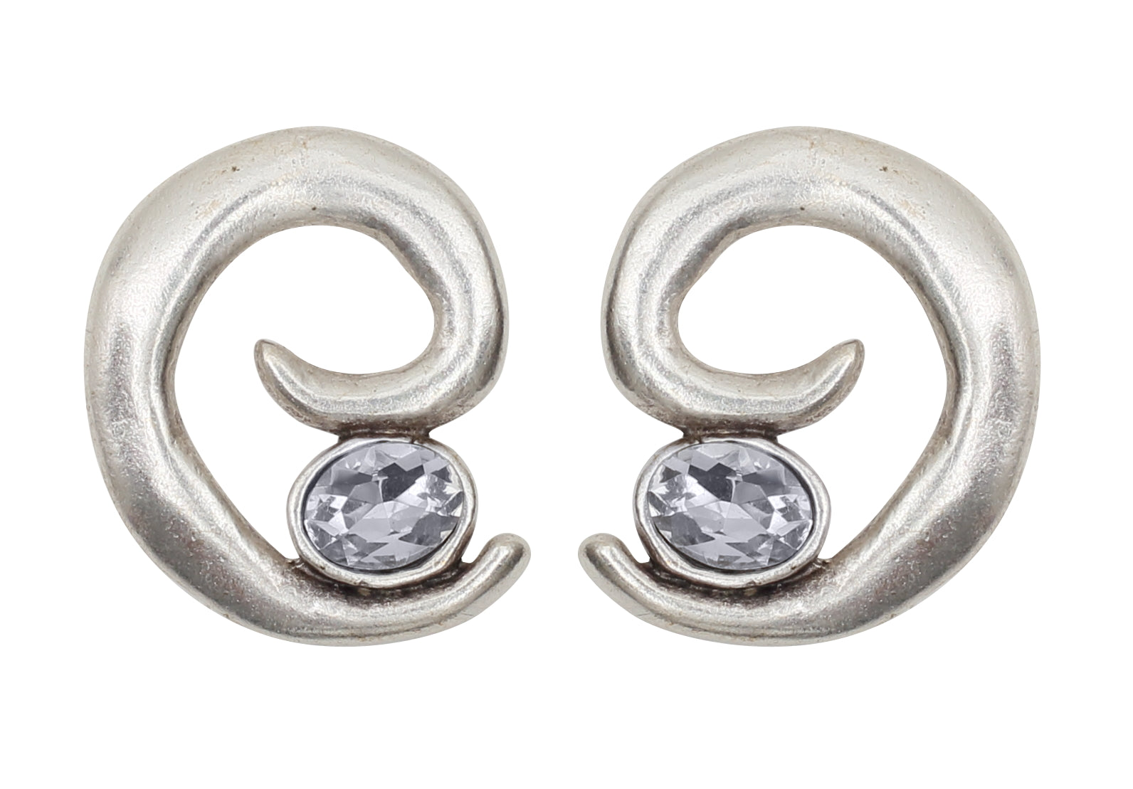 Hand Made Pewter Boho Earrings with Clear Crystals plated in Silver.