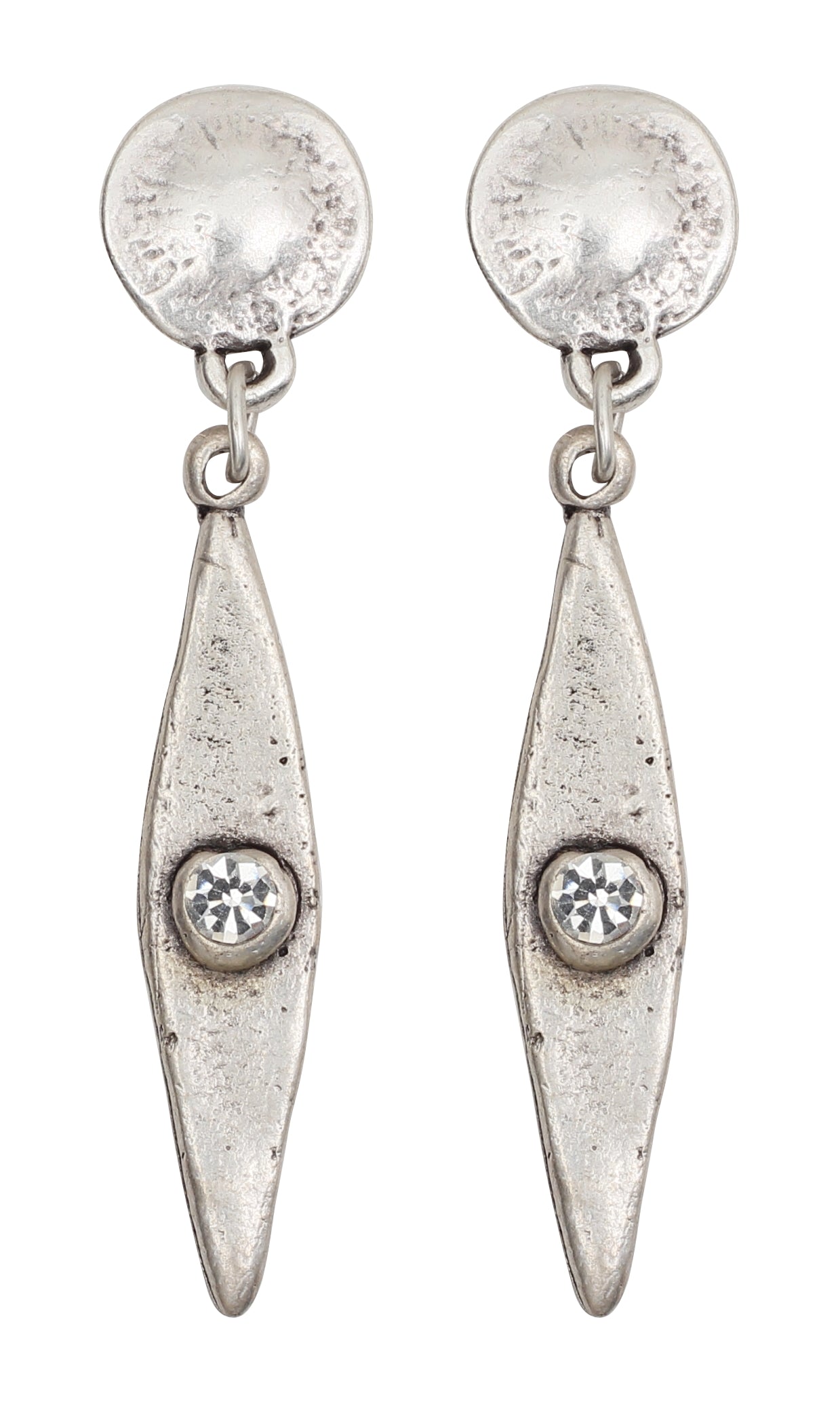 Hand Made Pewter Boho Earrings with Clear Crystals plated in Silver.