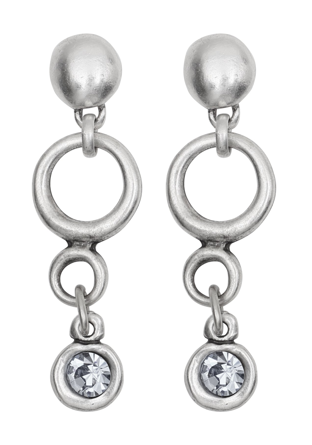 Hand Made Pewter Boho Earrings with Clear Crystals plated in Silver.