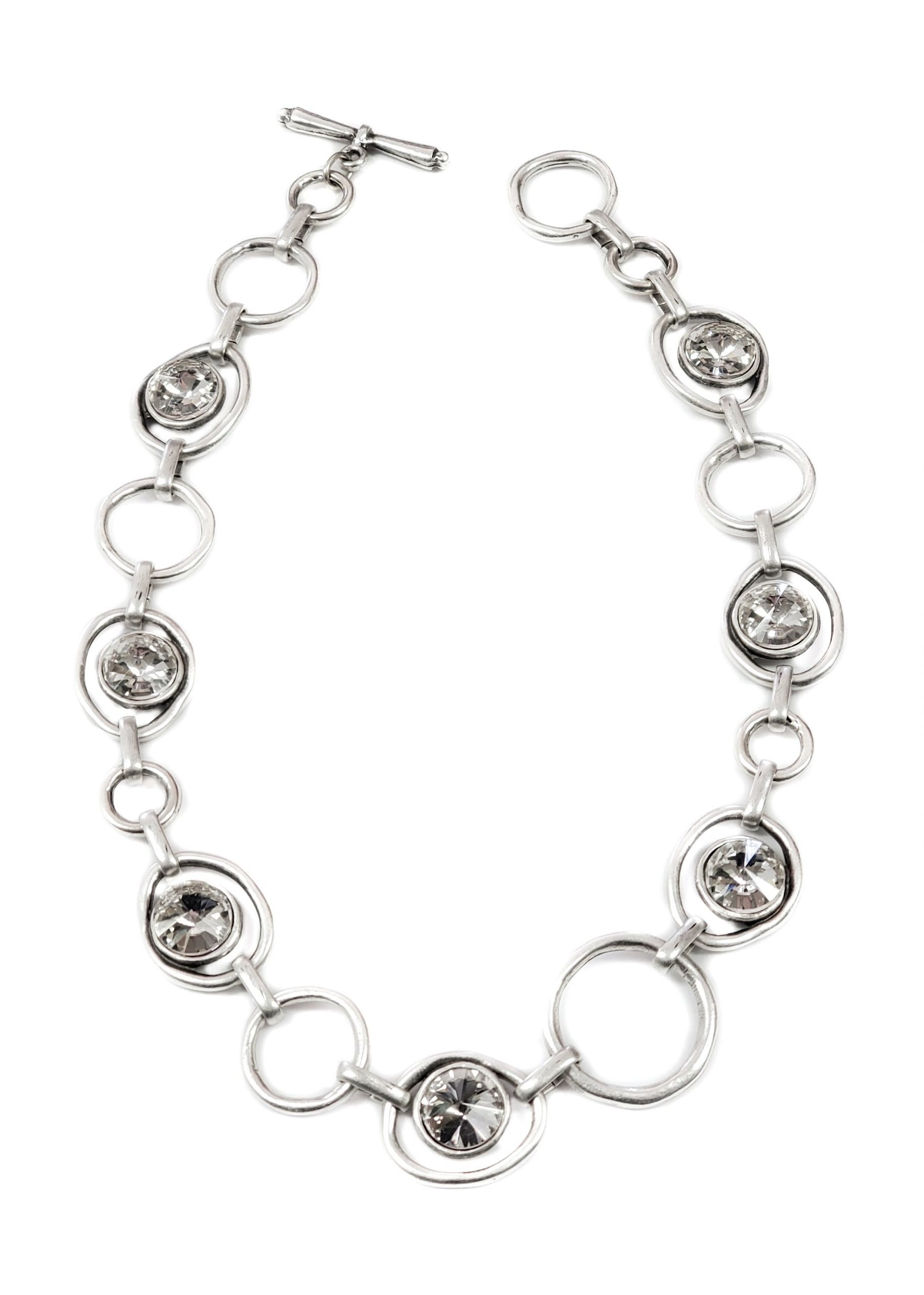 Hand Made Pewter Necklace plated in 925 Silver with Clear Crystals .
