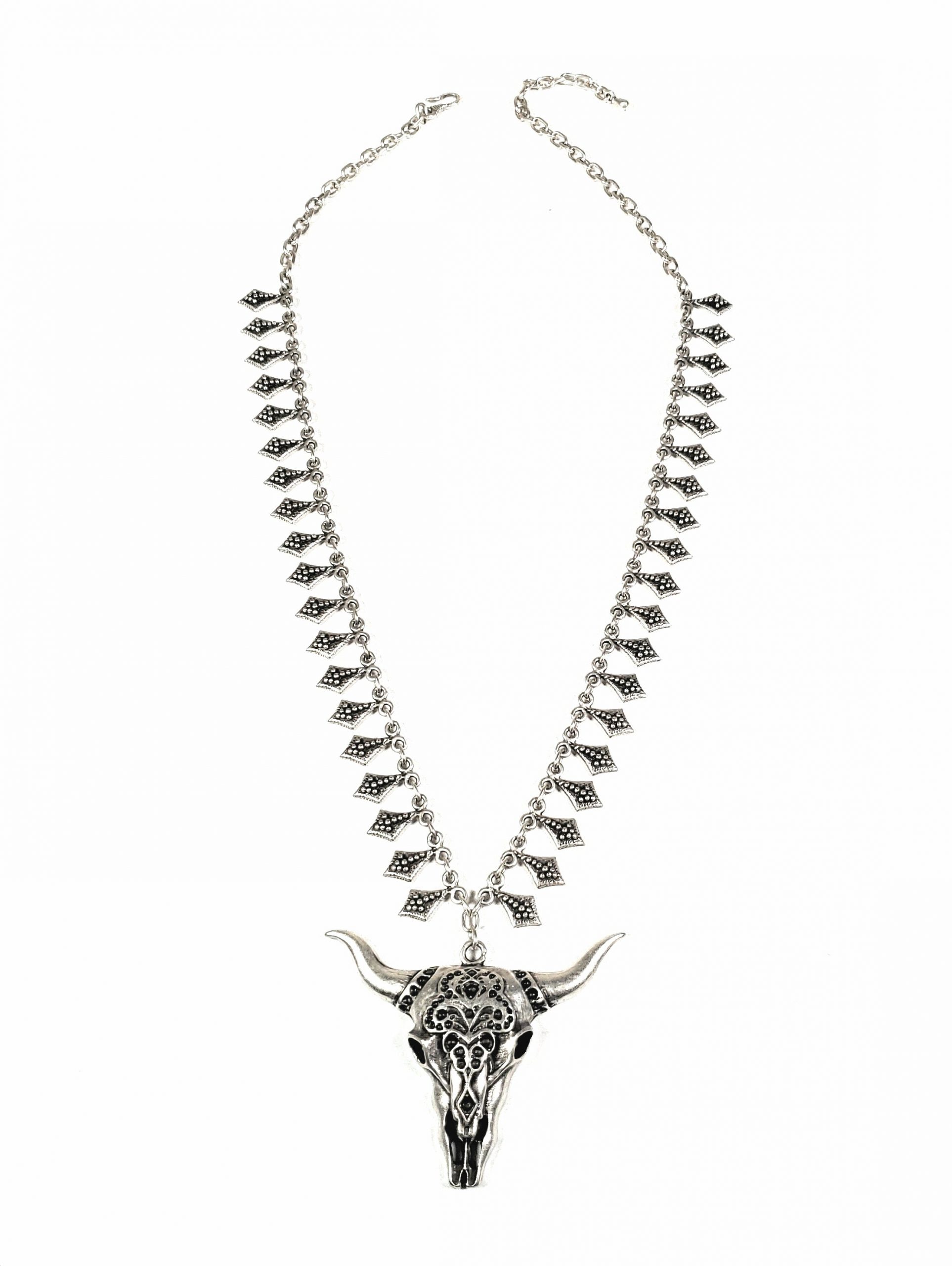 Hand Made Pewter Boho Necklace plated in 925 Silver .