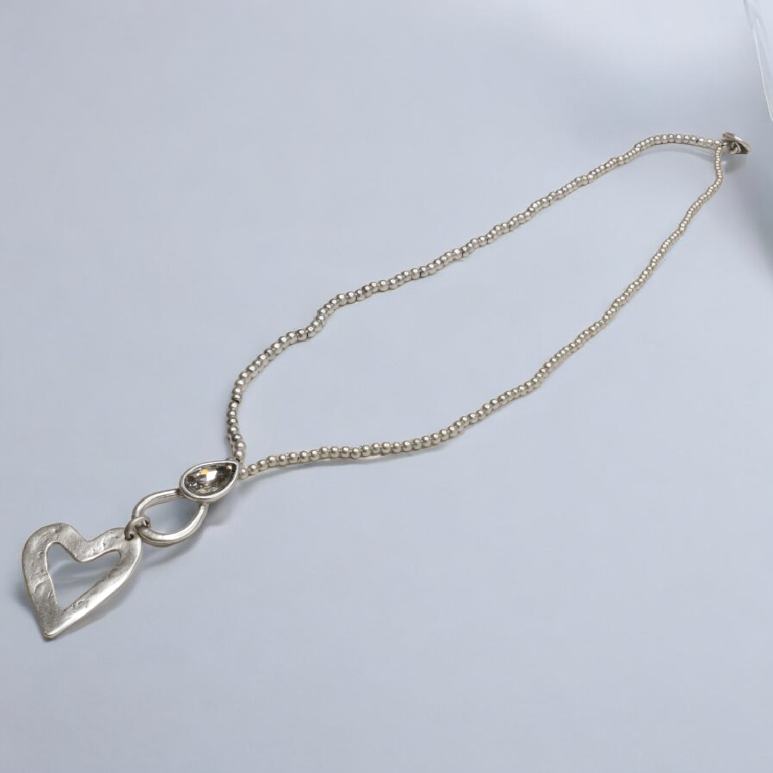 Hand Made Pewter Necklace with clear crystal plated in 925 Sterling Silver, Hypoallergenic & Nickel free.