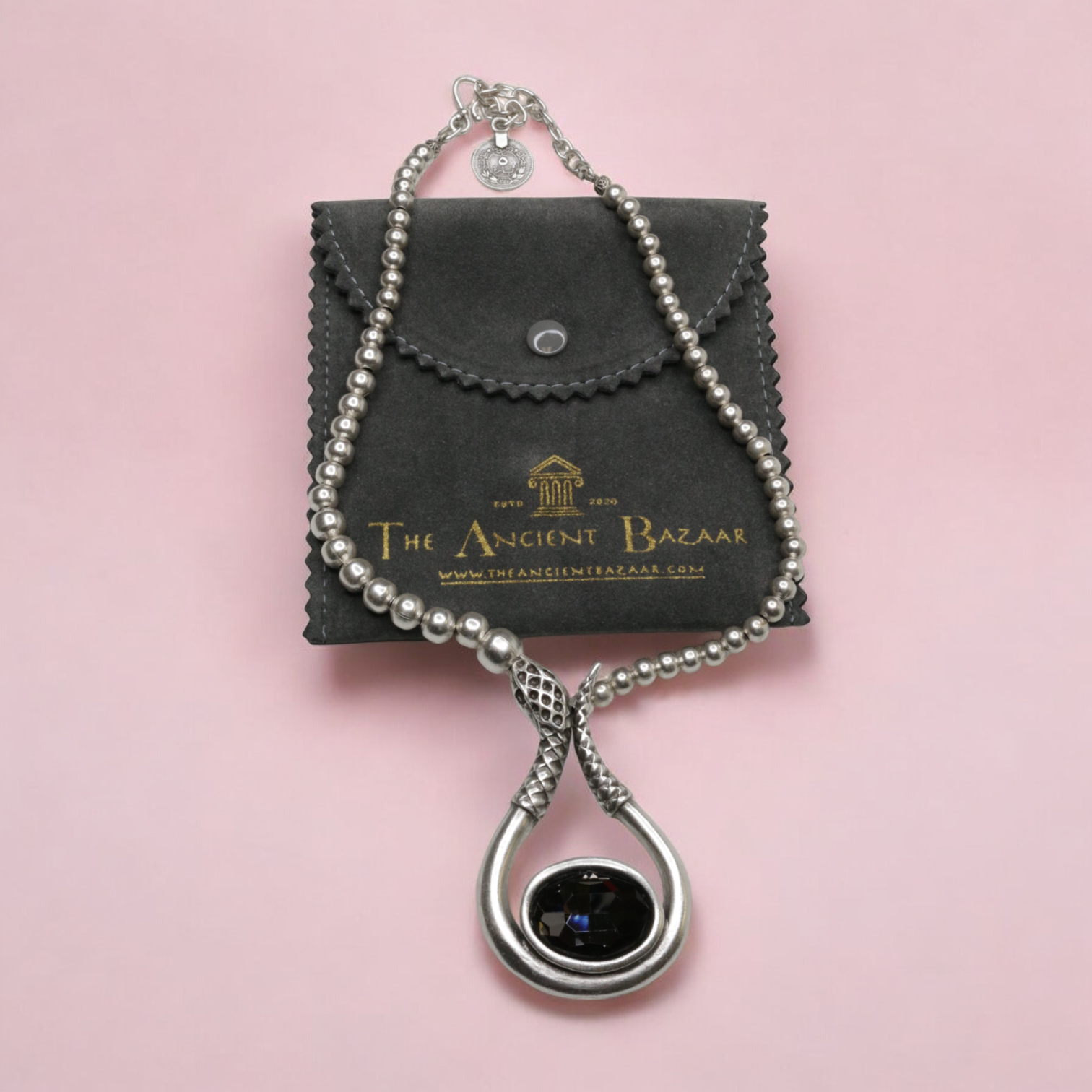 Hand Made Pewter Necklace with Smokey Gray Crystal, Plated in 925 Sterling Silver.