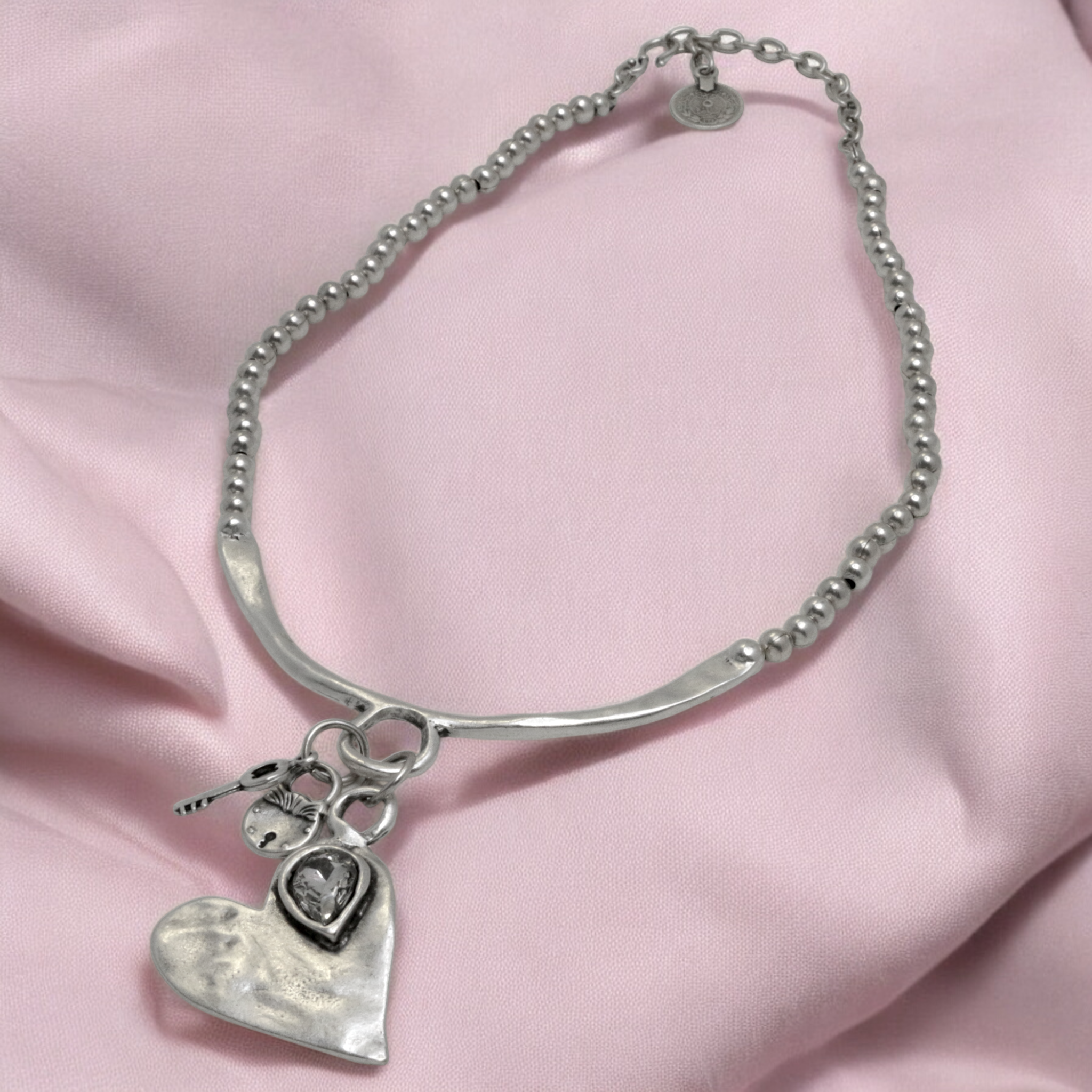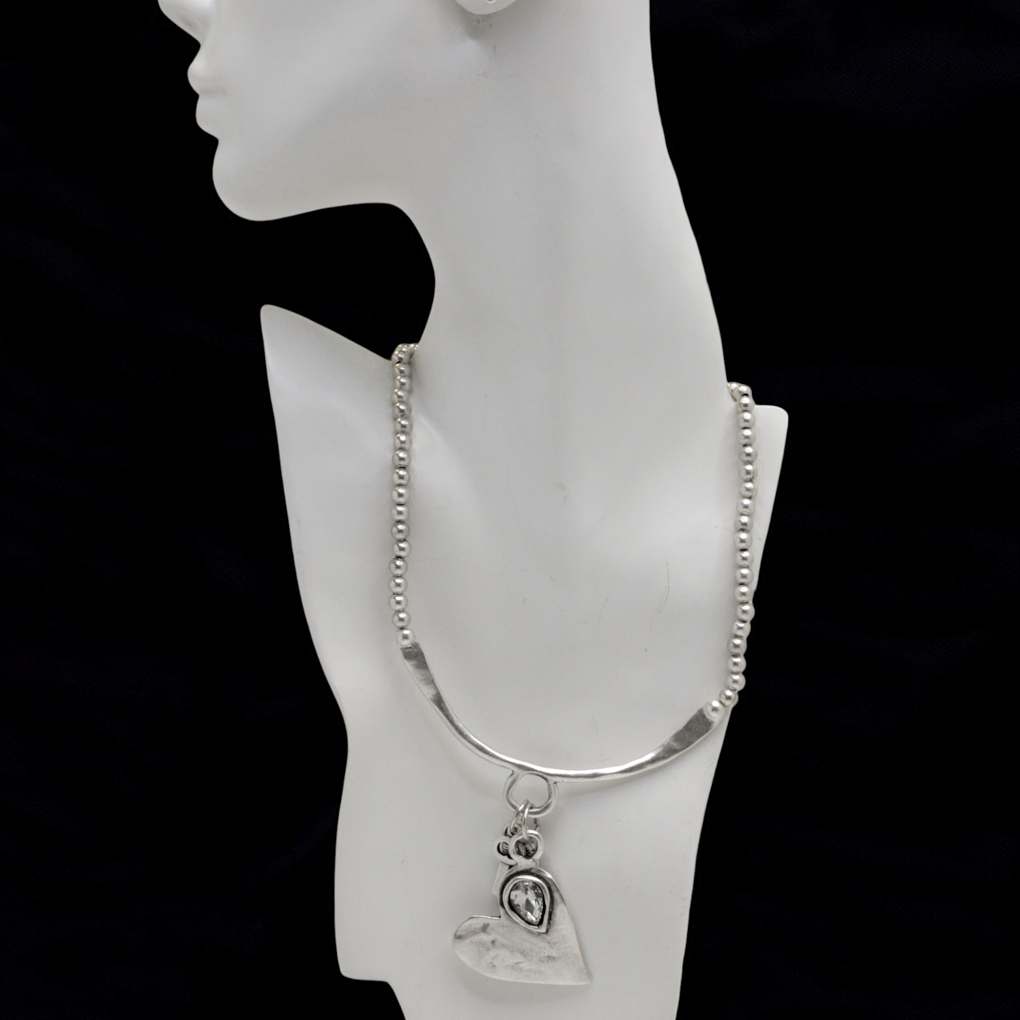 Hand Made Pewter Necklace with clear crystal plated in 925 Sterling Silver, Hypoallergenic & Nickel free.