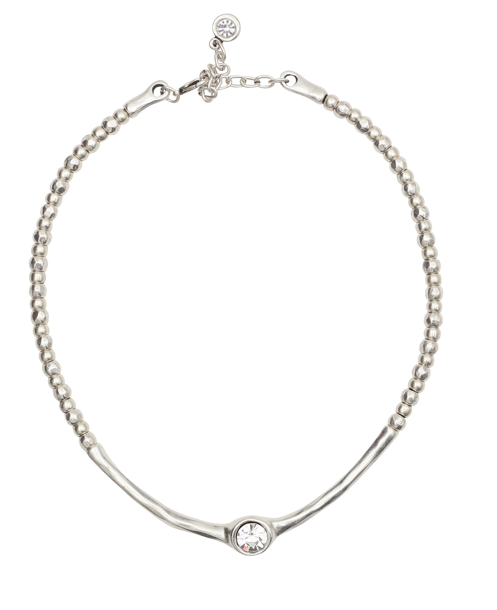 Hand Made Pewter Boho Necklace with clear crystal plated in Silver, Hypoallergenic & Nickel free.