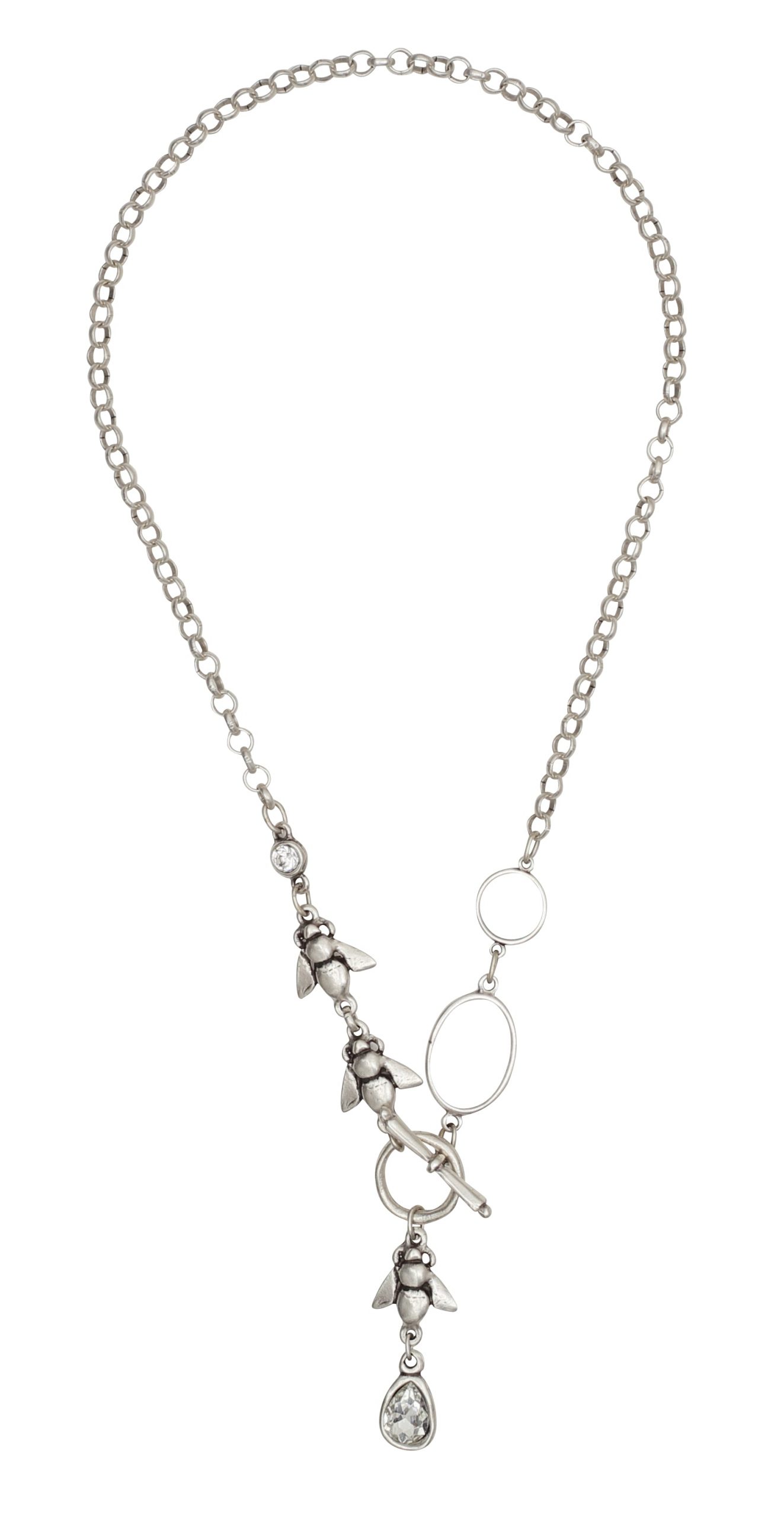 Hand Made Pewter Bee Necklace with Clear Crystals, plated in Silver.
